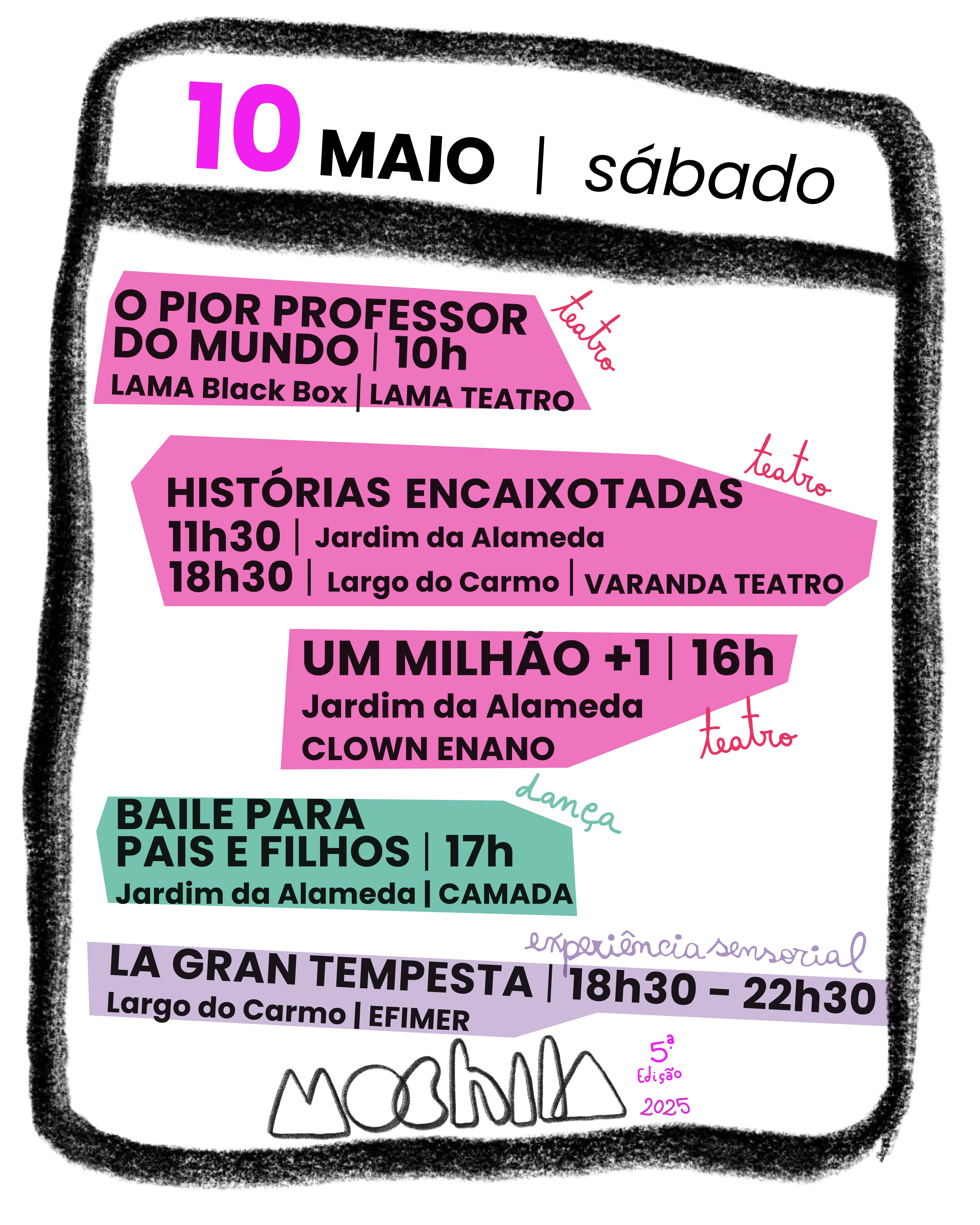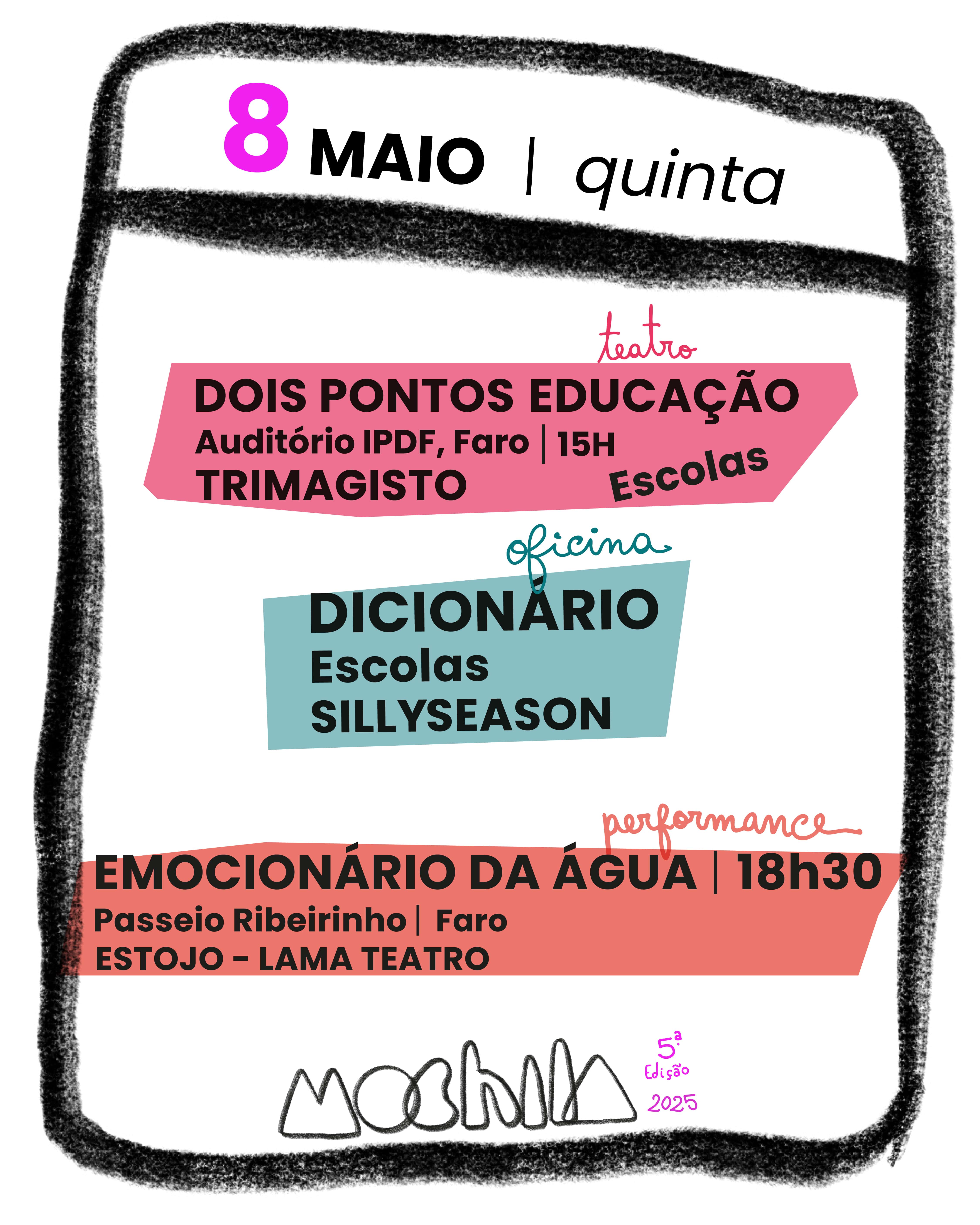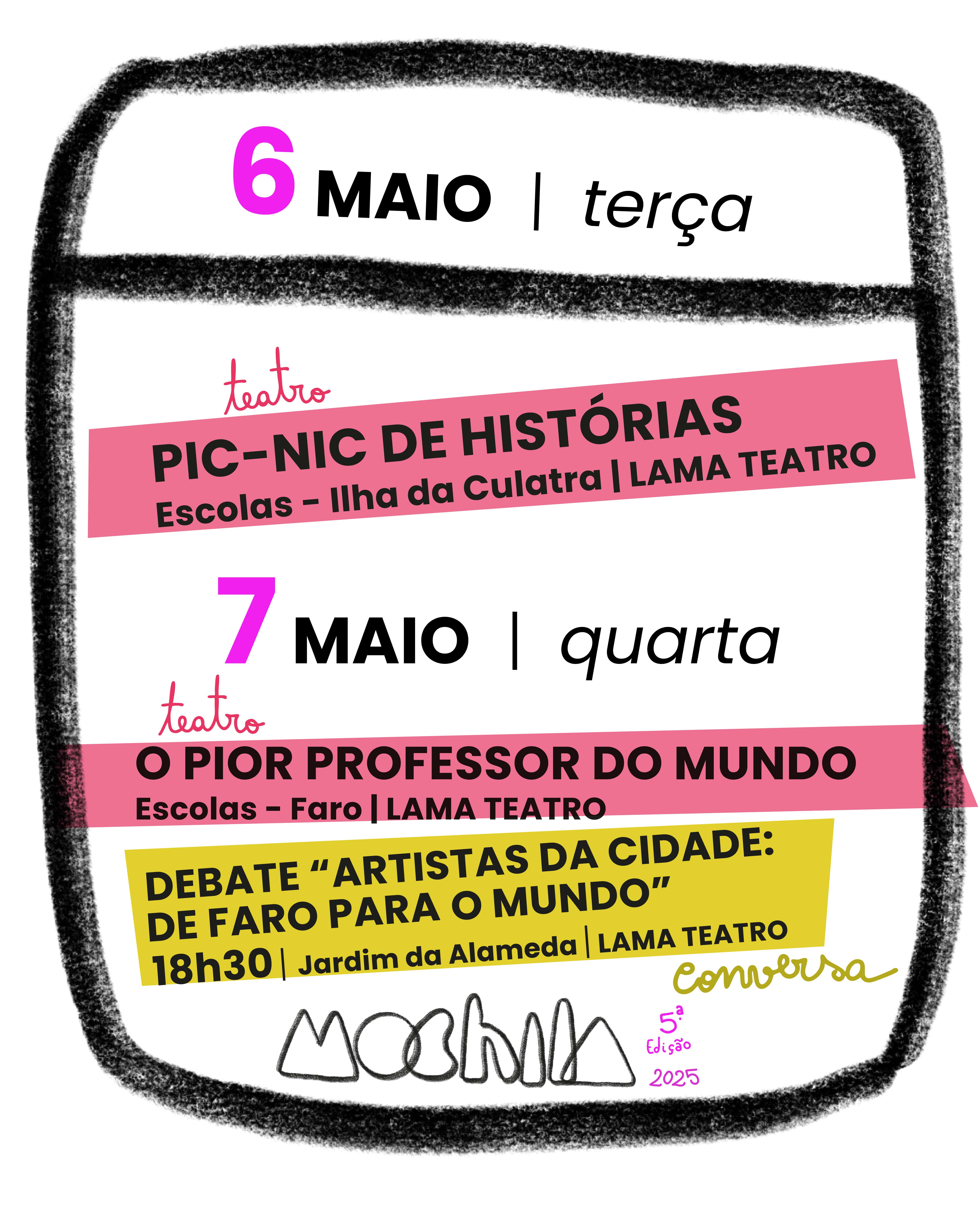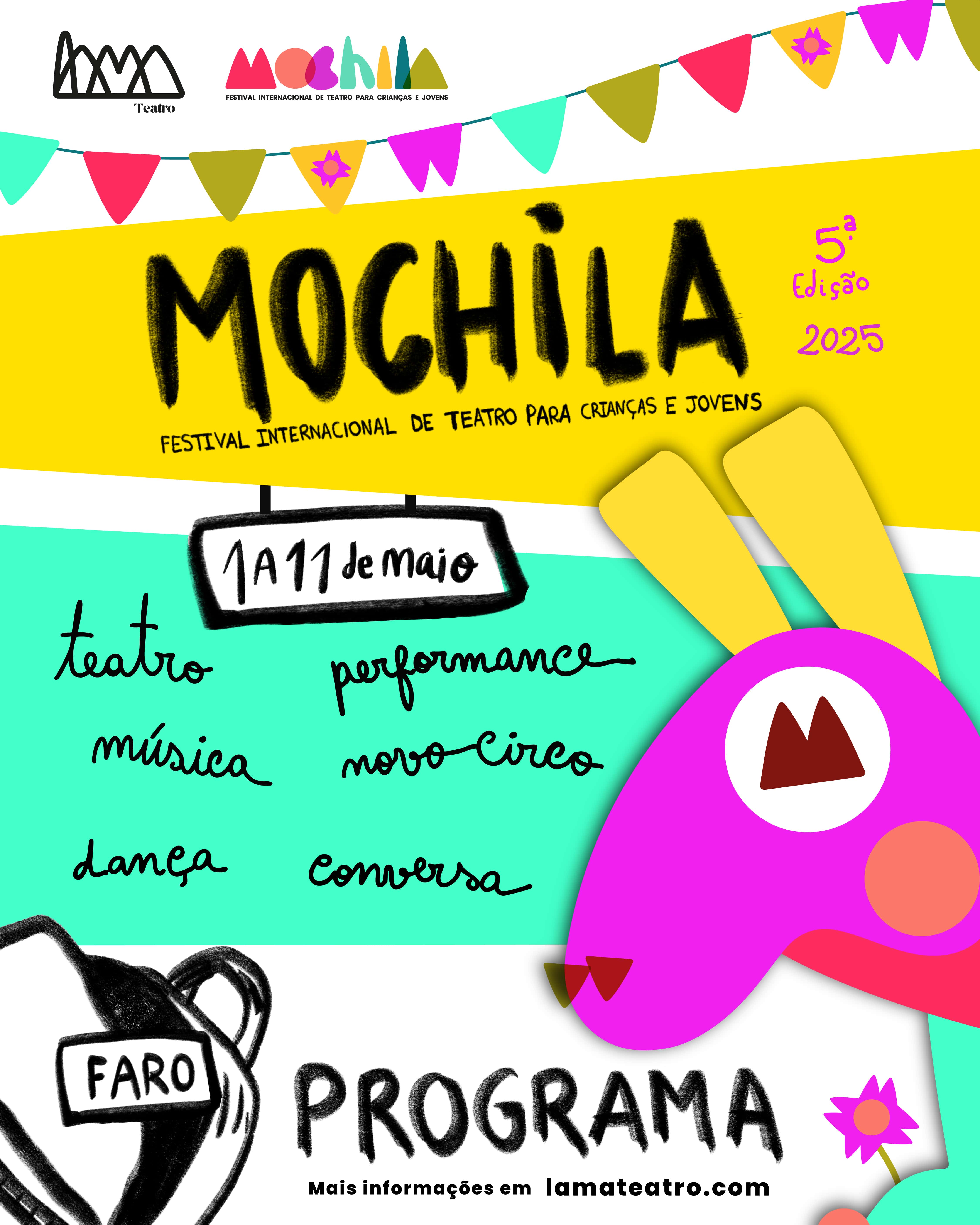 A 5.ª edição da MOCHILA – Festival Internacional de Teatro para Crianças e Jovens, decorrerá entre os dias 1 e 11 de maio de 2025, na cidade de Faro.